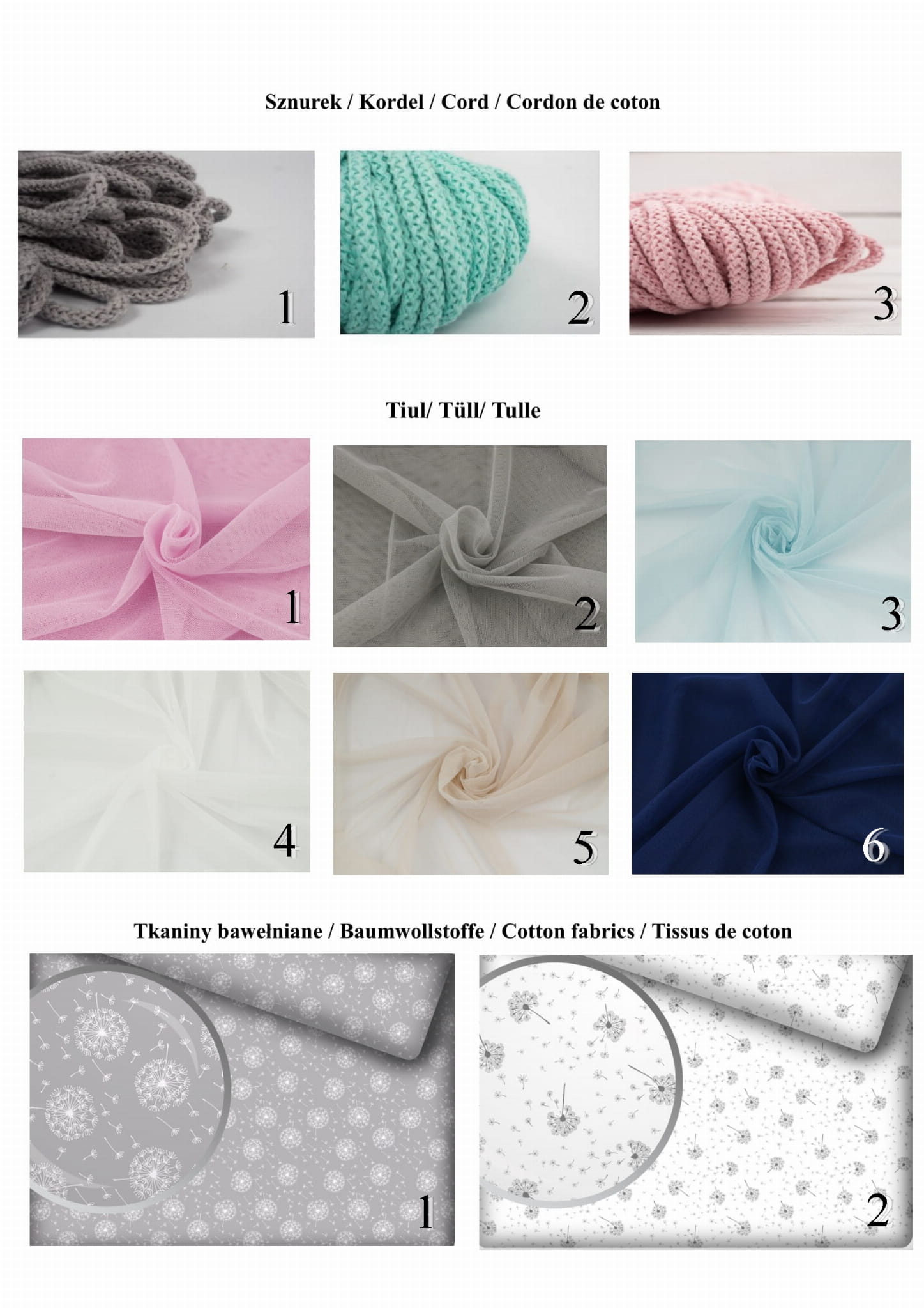 Alles wird aus 100% Baumwolle und Tüll hergestellt.