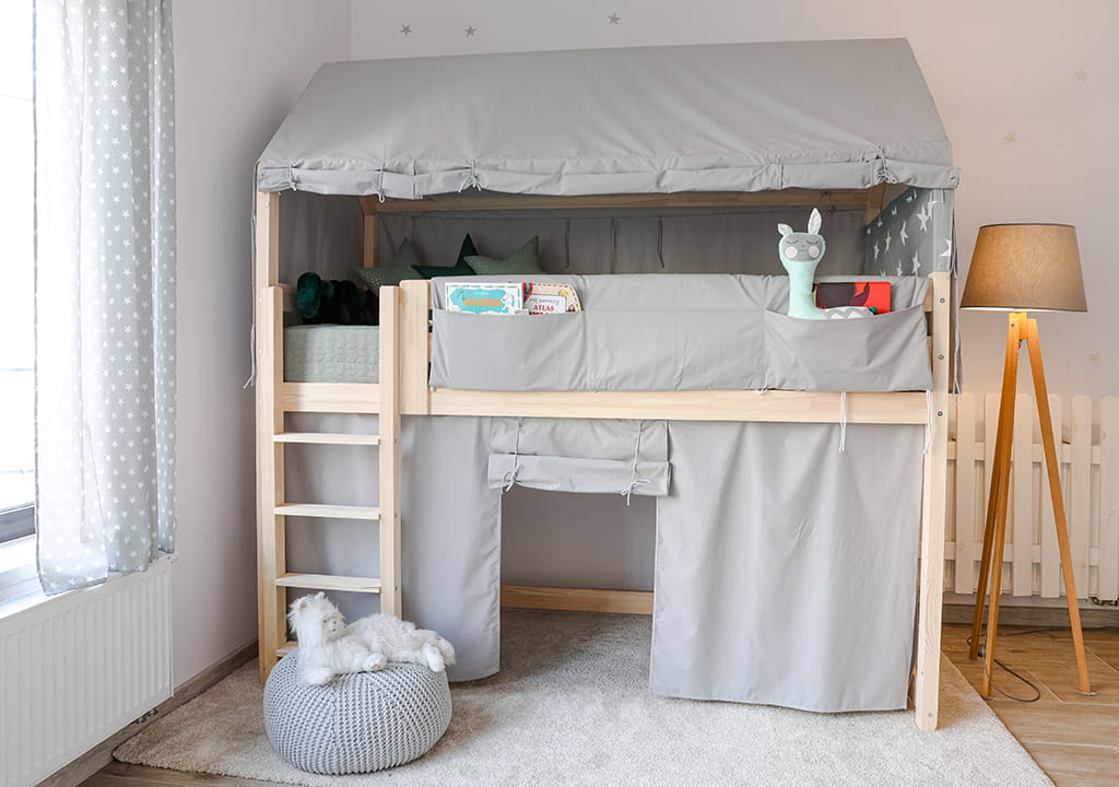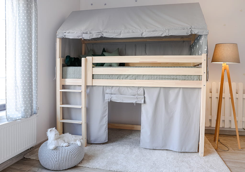 Mit dem Gedanken an unsere eigenen Kinder haben wir Abdeckungen zu Hausbetten entworfen, dank denen Ihre Sprösslinge einen tollen Raum zum Spielen haben werden.