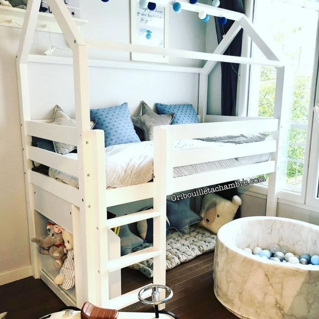 Durch die skandinavische Einfachheit eines solchen Hauses passt dieses Bett in jeden Innenraum.