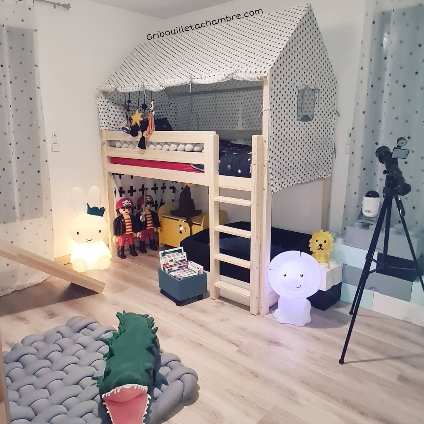 Das Set enthält einen Bettrahmen, eine Barriere, eine Lattenrost, Schrauben und Dübel sowie eine Bedienungsanleitung. Der Preis beinhaltet nicht die Matratze. Selbstmontagebett. Sie können einen Kamin und anderes Textilzubehör für das Kinderbett bestellen.