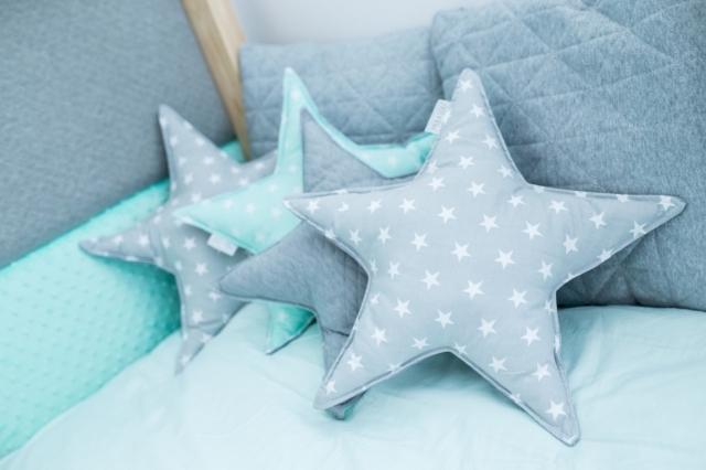 Diese Sternenkissen sind 45–46 cm breit und passen perfekt in jedes Bett oder Kinderzimmer.